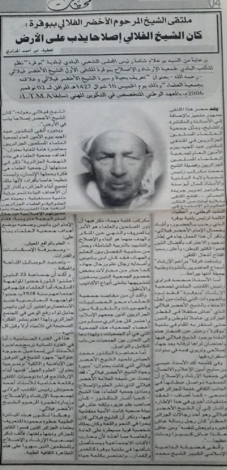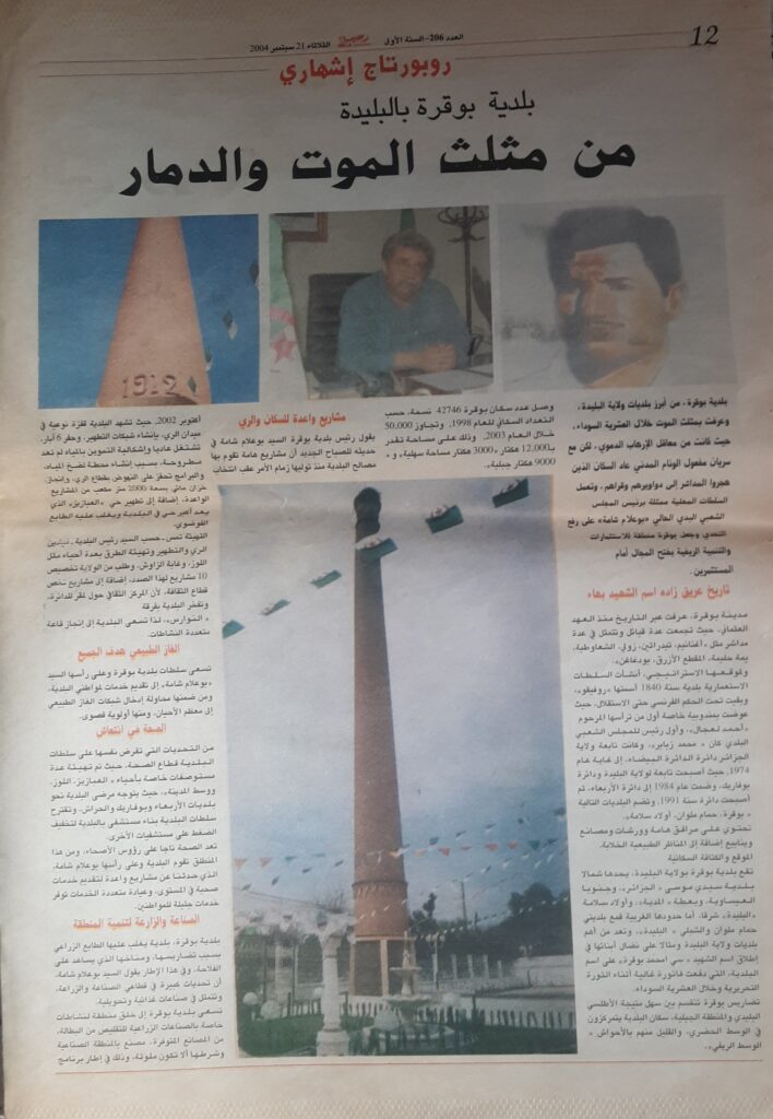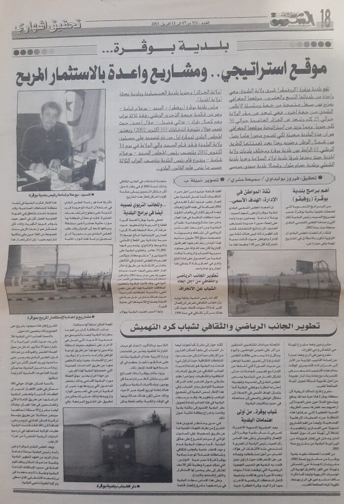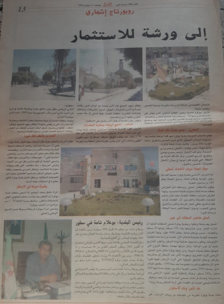 حوار لرئيس البلدية بوعلام شامة مع جريدة الصباح يوم 21 سبتمبر 2004